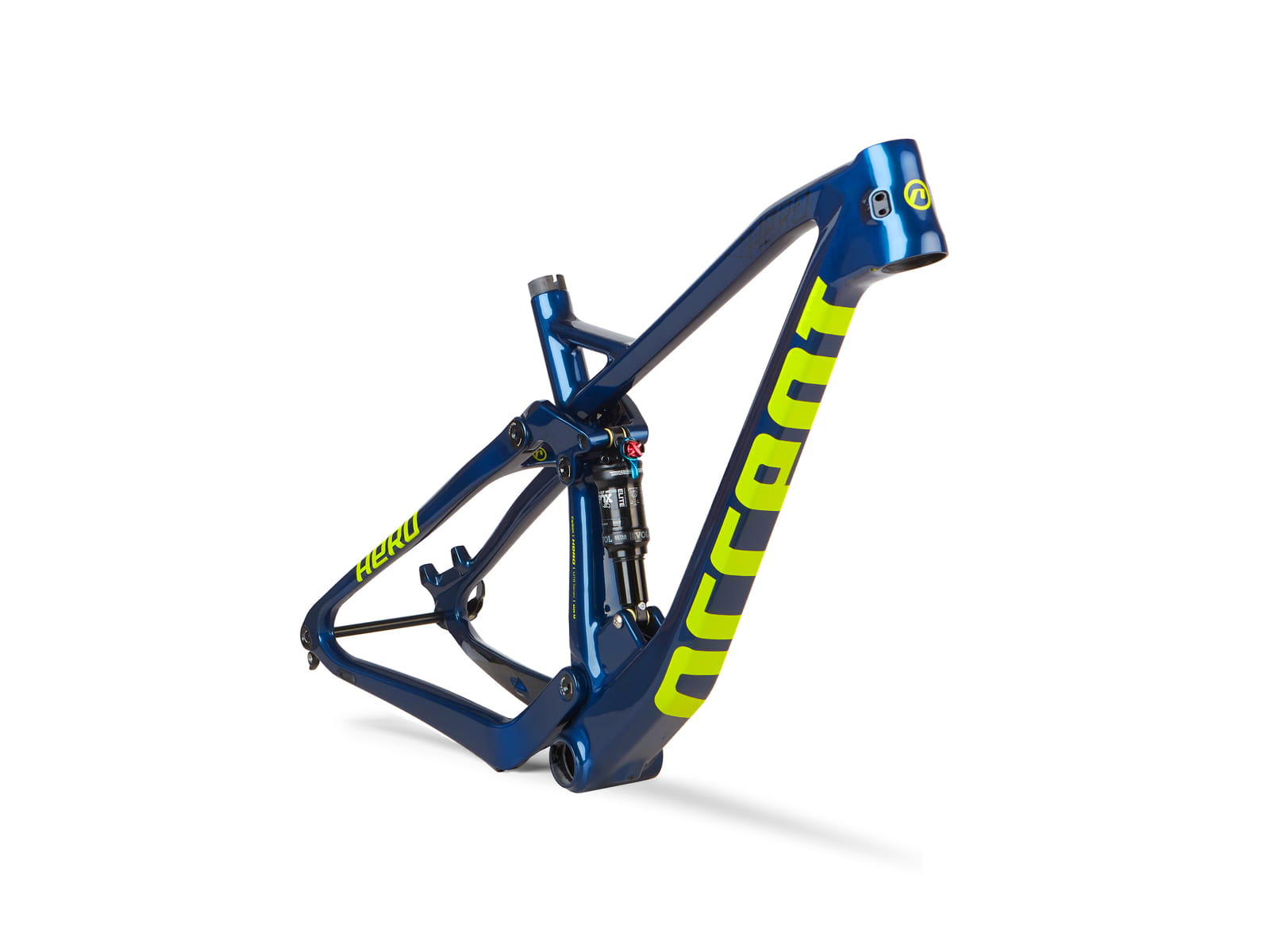 Gotowy na podjęcie wyzwania? W pełni zawieszona karbonowa rama Hero pokona nawet najbardziej wymagające trasy maratonów MTB i wyścigów XC. Jej agresywna geometria została zaprojektowana tak, aby nie tylko sprostać niekorzystnym warunkom, ale także zrobić to szybko. Rama przystosowana jest do widelców o skoku 100mm i damperów o wymiarach 165x40mm, mocowanych w systemie Trunnion. Istnieje także opcja zastosowania standardowego mocowania, dzięki czemu rama kompatybilna jest z szerokim wachlażem tylnych amortyzatorów. Sztywna oś o standardzie boost (12x148mm) sprawia, że rama jest jeszcze sztywniejsza, a zbudowana na niej maszyna pewnie prowadzi się w terenie. Możliwość wewnętrznego poprowadzenia pancerzy nie tylko hamulca i przerzutki, ale także droppera i blokady dampera zapewnia ochronę przed nadmiernym ich zużyciem, a także schludny wygląd.