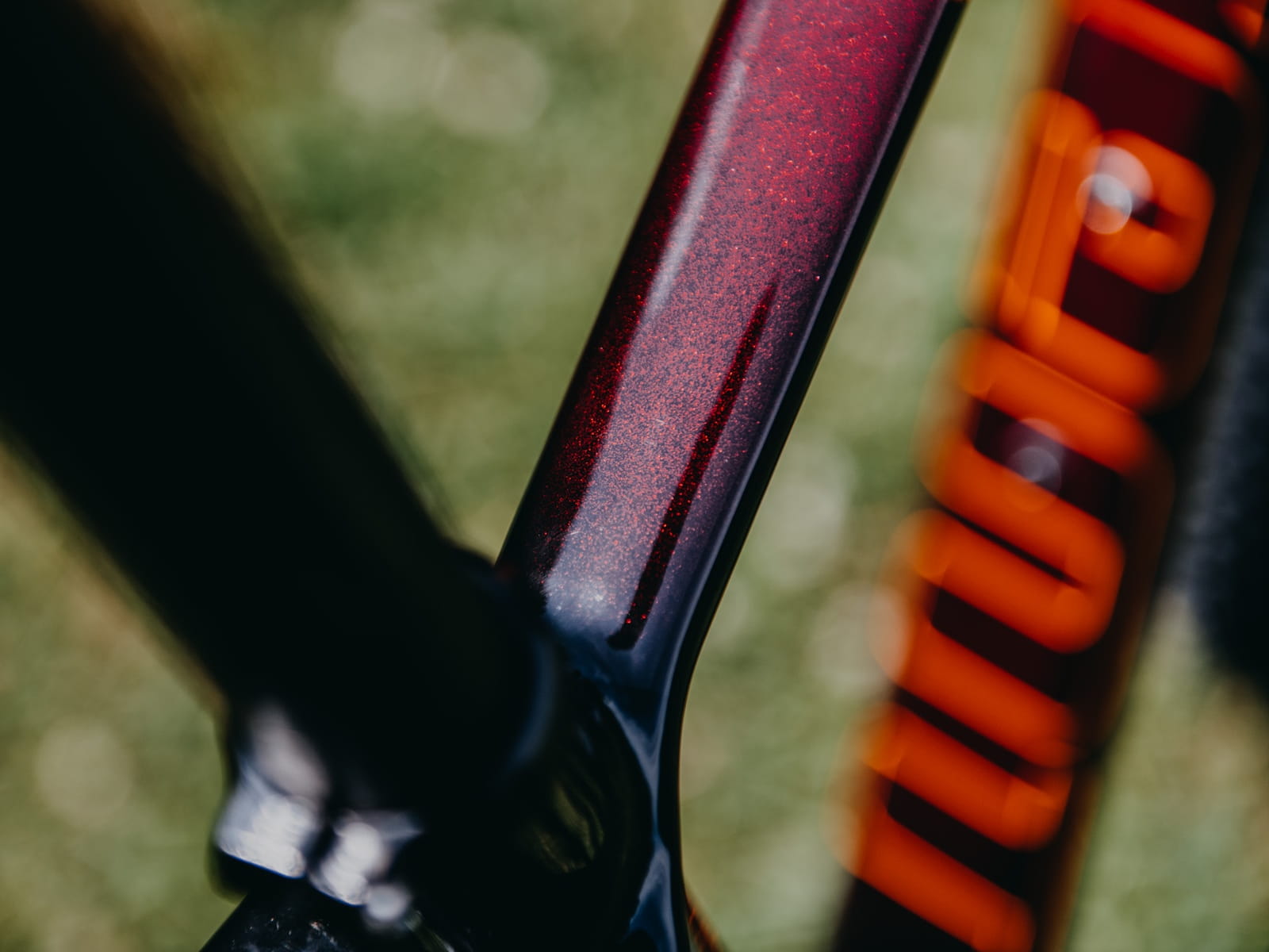 - Wkręcana przelotka pancerzy w główkę ramy, uwzględnia miejsce na regulowany wspornik siodła. Dodatkowo dzięki takiemu rozwiązaniu unikamy otarć od pancerzy w okolicach główki.