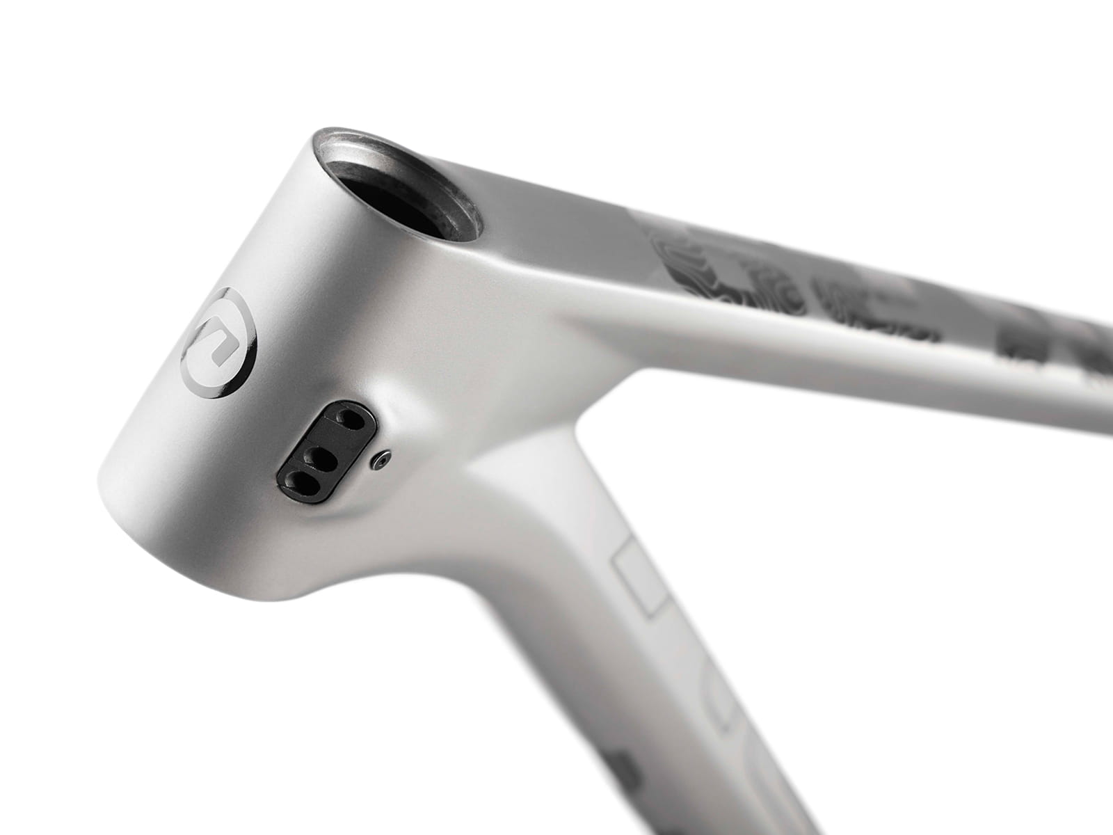- Wkręcana przelotka pancerzy w główkę ramy, uwzględnia miejsce na regulowany wspornik siodła. Dodatkowo dzięki takiemu rozwiązaniu unikamy otarć od pancerzy w okolicach główki.