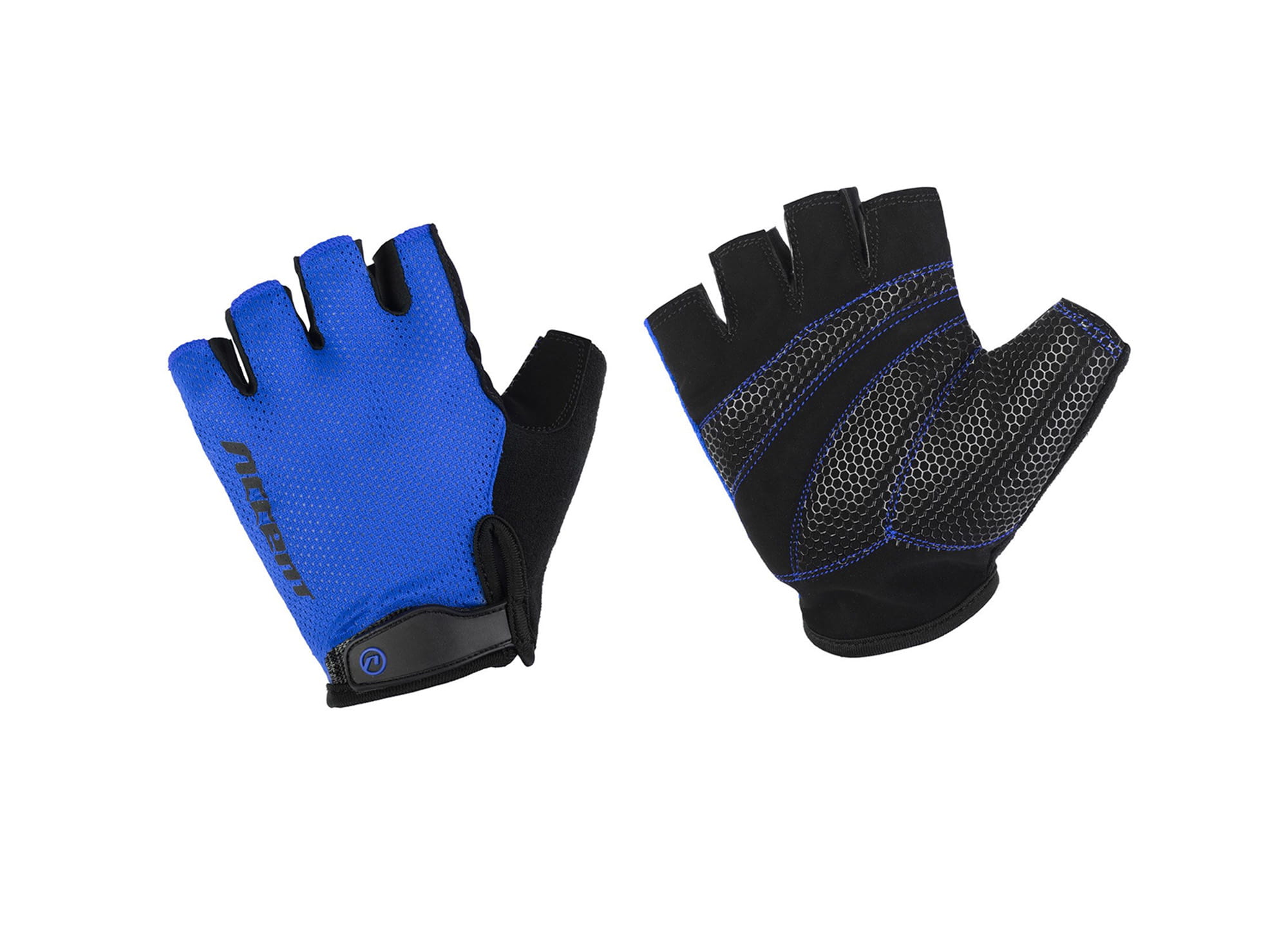 Rękawiczki kolarskie bez palców. Wierzchnia strona dobrze oddychająca, zapinana na rzep. Wewnętrzna część dłoni wzmocniona dla większego komfortu trzymania kierownicy.