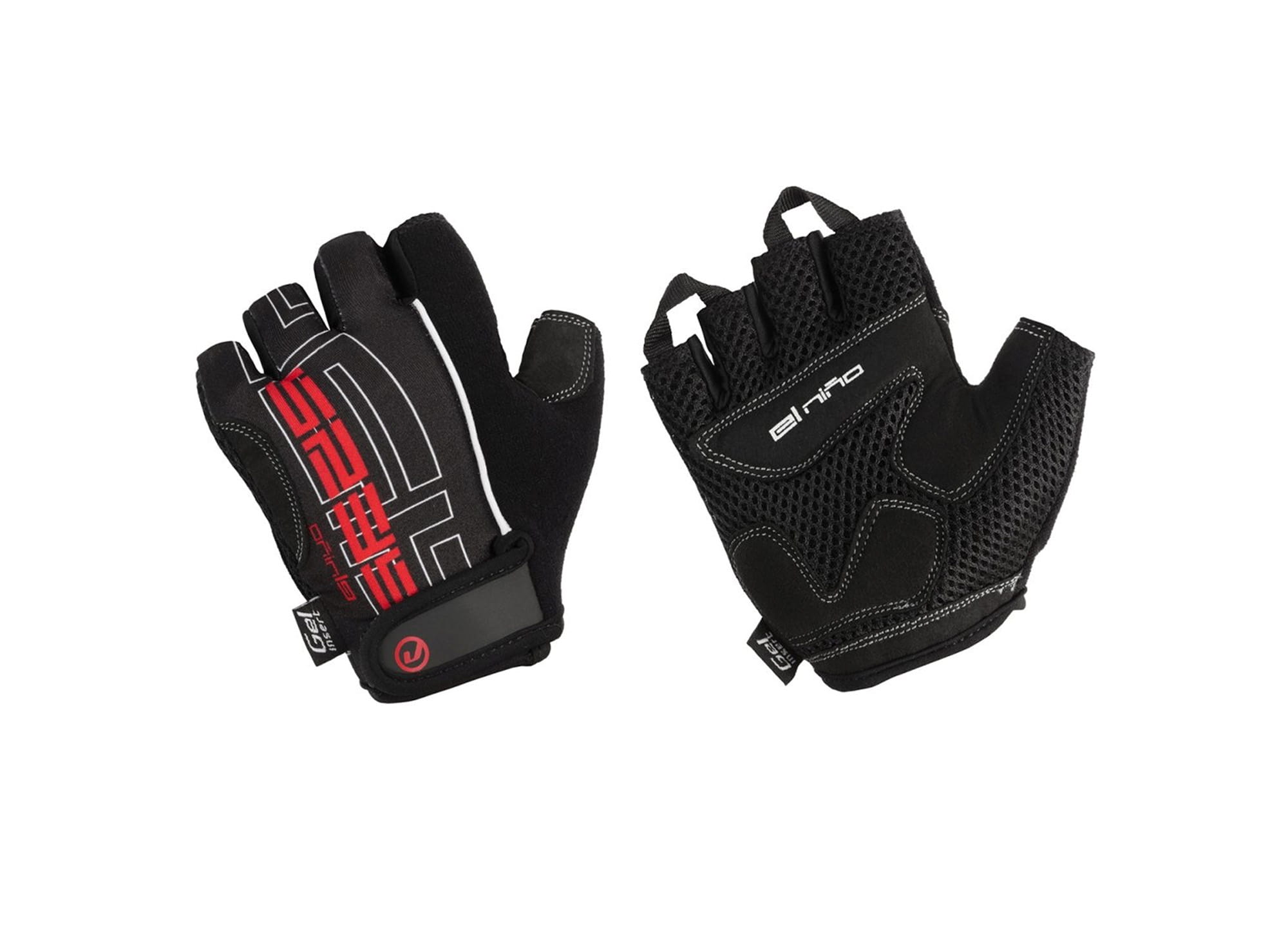 Rękawiczki na rower z serii El Niño. Wyposażone w miękką stronę wewnętrzną, dzięki czemu komfortowo trzyma się kierownicę. Jest ona dodatkowo wzmocniona i uzupełniona dobrze wentylującą siateczką. Wierzchnia strona jest elastyczna i wygodnie opina dłoń. Rękawiczki są zapinane na rzep. Zdejmowanie ułatwiają uchwyty pomiędzy palcami.