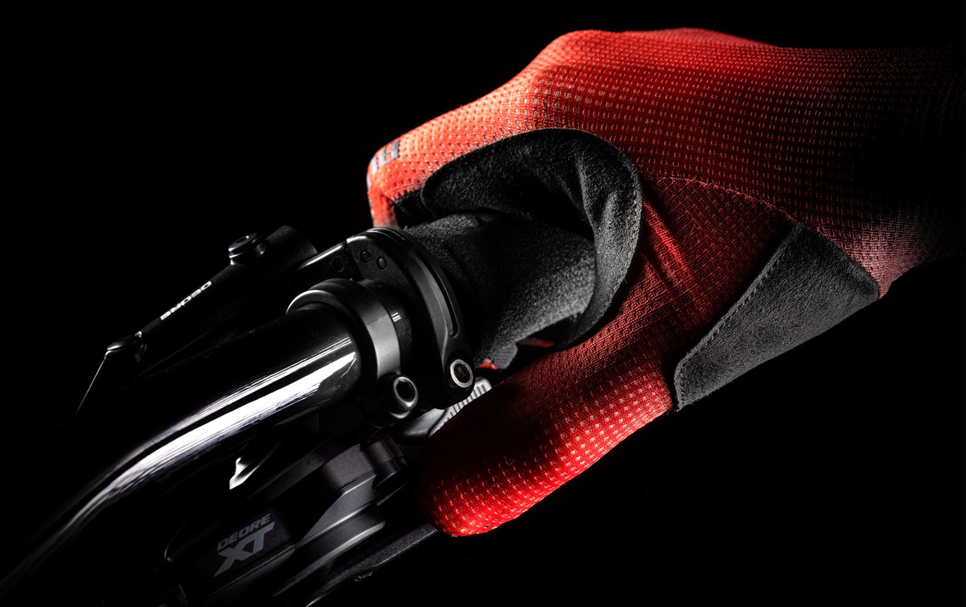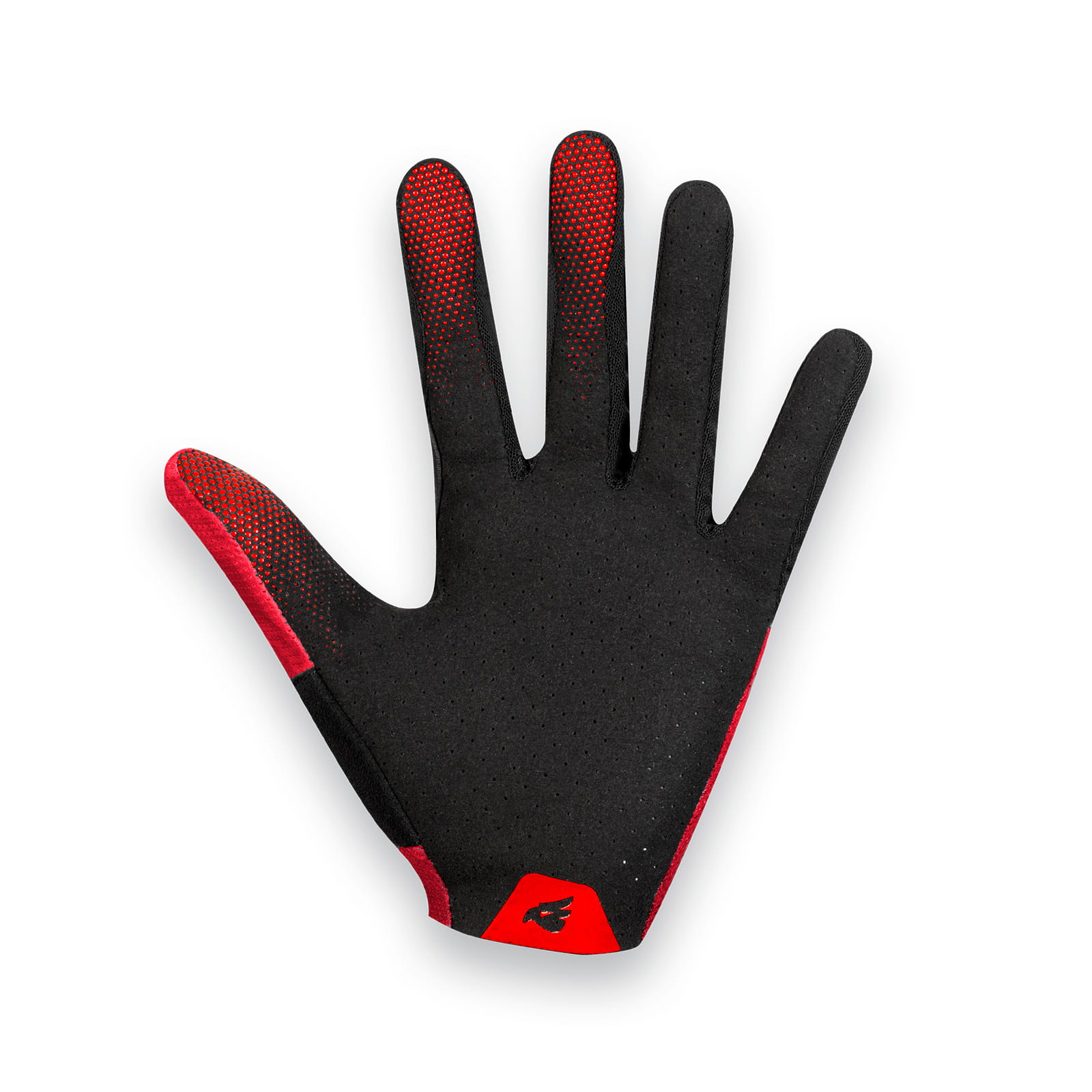 Rękawiczki z długimi palcami przeznaczone do XC / Enduro / BMX. Anatomiczne ukształtowanie. Silikonowy uchwyt na nadgarstku. Wykonane z materiału poprawiającego wentylację i komfort użytkowania. Góra wykonana z elastycznego materiału. Miękka wkładka na kciuku do otarcia twarzy z potu i brudu. Silikonowy, antypoślizgowy nadruk na palcach dla lepszej kontroli nad klamkami hamulcowymi. Bez rzepu doskonale przylegają do nadgarstka. Rozmiary: S 20 - 21,5 cm, M 21,5 - 23 cm, L 23 - 24,5 cm, XL 24,5 - 26 cm.