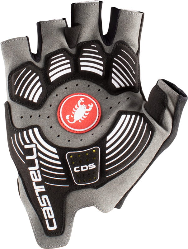 Rękawiczki kolarskie z systemem tłumienia drgań CDS (Castelli Damping System). Żelowe wstawki dla poprawy komfortu jazdy oraz silikonowy zadruk dla pewniejszego chwytu. Mankiet zapinany na rzep. Waga 44 g (para)