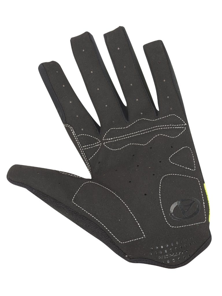 Rękawiczki kolarskie z długimi palcami. Strona wewnętrzna wykonana z syntetycznej skóry Amara z dodatkowymi antypoślizgowymi i żelowymi naszyciami. Strona zewnętrzna wykonana z neoprenu i materiału Spandex, zapewniającego elastyczność i dużą wytrzymałość. Na palcach specjalne wzmocnienia. Zapięcie na rzep. Kolor: czarno-żółte.