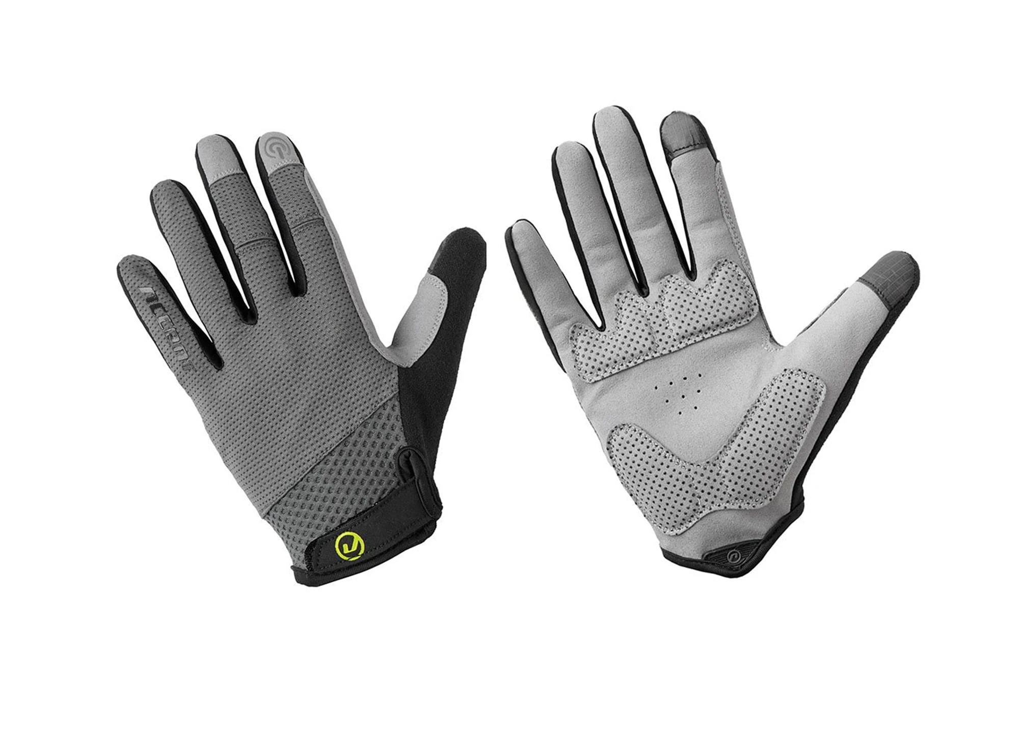 Rękawiczki na rower z długimi palcami w kolorach dodających energii! Bardzo lekkie, idealne podczas intensywnego wysiłku. Zaprojektowane, by sprostać wymaganiom kolarzy: dobrze oddychają, chronią dłonie i poprawiają komfort trzymania kierownicy. Wzmocniona wewnętrzna część dłoni. Palec wskazujący i kciuk wyposażone są w końcówki do obsługi ekranów dotykowych - nie musisz ściągać rękawiczek, by skorzystać z telefonu.