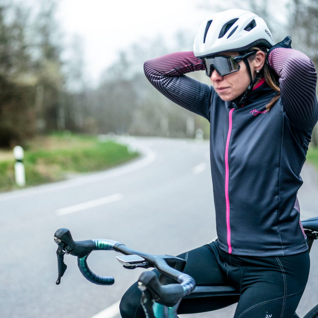 Podaruj zimie odrobinę lata dzięki zimowej kurtce Rogelli Vivid. Stylowa kurtka zimowa wykończona przy rękawach subtelnym tropikalnym nadrukiem, który sprawi, że poczujesz się ciepło nawet w najchłodniejsze i najciemniejsze dni w roku. W projektowaniu kurtki zimowej Vivid doskonale łączy się styl i funkcjonalność. Wiatroszczelny i wodoodporny materiał Dynashield 5000 zapewnia przyjemne ciepło podczas jazdy na rowerze. Elastyczny pas z silikonowym nadrukiem i elastyczne mankiety zapewniają, że kurtka zimowa o dopasowanym kroju podczas jazdy na rowerze pozostaje na swoim miejscu. Trzy tylne kieszenie i dodatkowa tylna kieszeń zapinana na zamek ułatwiają przenoszenie jedzenia lub telefonu. Ciesz się zimą na rowerze z uśmiechem na twarzy w kurtce zimowej Vivid.• Krój typu Race• Tkanina Dynashield 5000 / Tkanina Dynatherm Flex• Trzy tylne kieszenie• dodatkowa kieszeń z tyłu zapinana na zamek• Elastyczny mankiet na końcu rękawa• Elastyczny pas z silikonowym nadrukiem od wewnątrz• Odblaskowe akcenty dla dodatkowej widocznościA:Zmierz swoją klatkę piersiową:Umieść metr krawiecki na wysokości pach, zmierz cały obwód na tej wysokości. Kobiety: Umieść metr krawiecki tuż pod pachami, zmierz cały obwód na tej wysokości.B:By zmierzyć pas umieść metr krawiecki w najwęższym miejscu przy pasie.C:By zmierzyć obwód w biodrach umieść metr w najszerszym punkcie bioder.D:Długość mierzona jest z tyłu na karku gdzie powinien znajdować się kołnierzyk koszulki.KobietyXSSMLXLXXLAKlatka piersiowa74-8383-8787-9191-9595-99100-106BPas70-7676-8080-8484-8888-9292-98CBiodra82-8788-9495-101102-106107-111112-118DDługość tułowia<61,561,5-6463,5-65,565-67,567-69>69