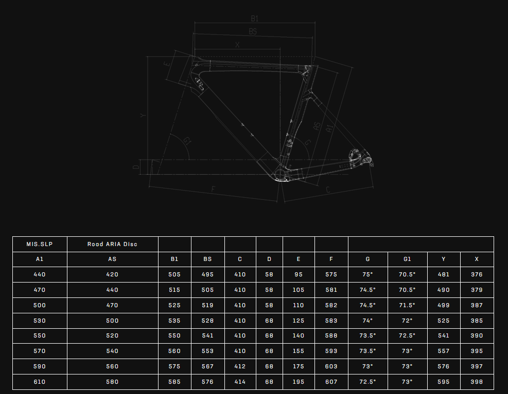 - Rama: Aria Disc carbon, mechanical/electronic shifting compatible, PressFit 86,5x41mm BB, head tube 1.4"-1.1/8", integrated seat clamp, full carbon dropout, flat mount, thru axle 12x142mm, rozmiary 44-47-50-53-55-57-59-61cm