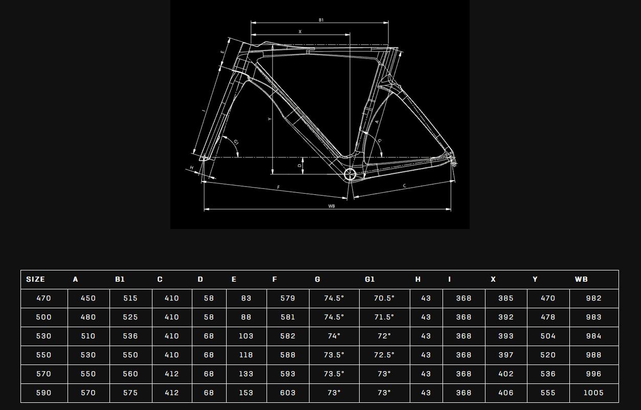 - Wspornik siodła: Oltre Full Carbon Aero special dimension seatpost, 20mm offset, długość: 280mm-47cm, 300mm-50/53cm, 350mm-55/59cm