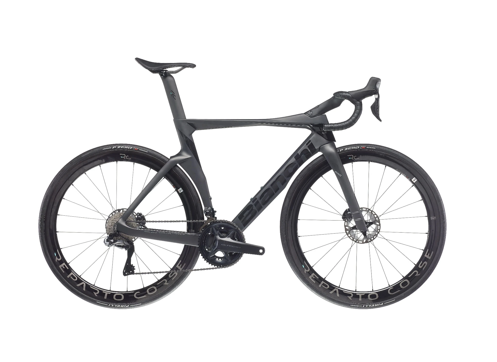 - Widelec: Full Carbon aero w/Bianchi CV System, Disc brakes, integrated head 1.1/4", flat mount caliper, thru axle 12x100mm