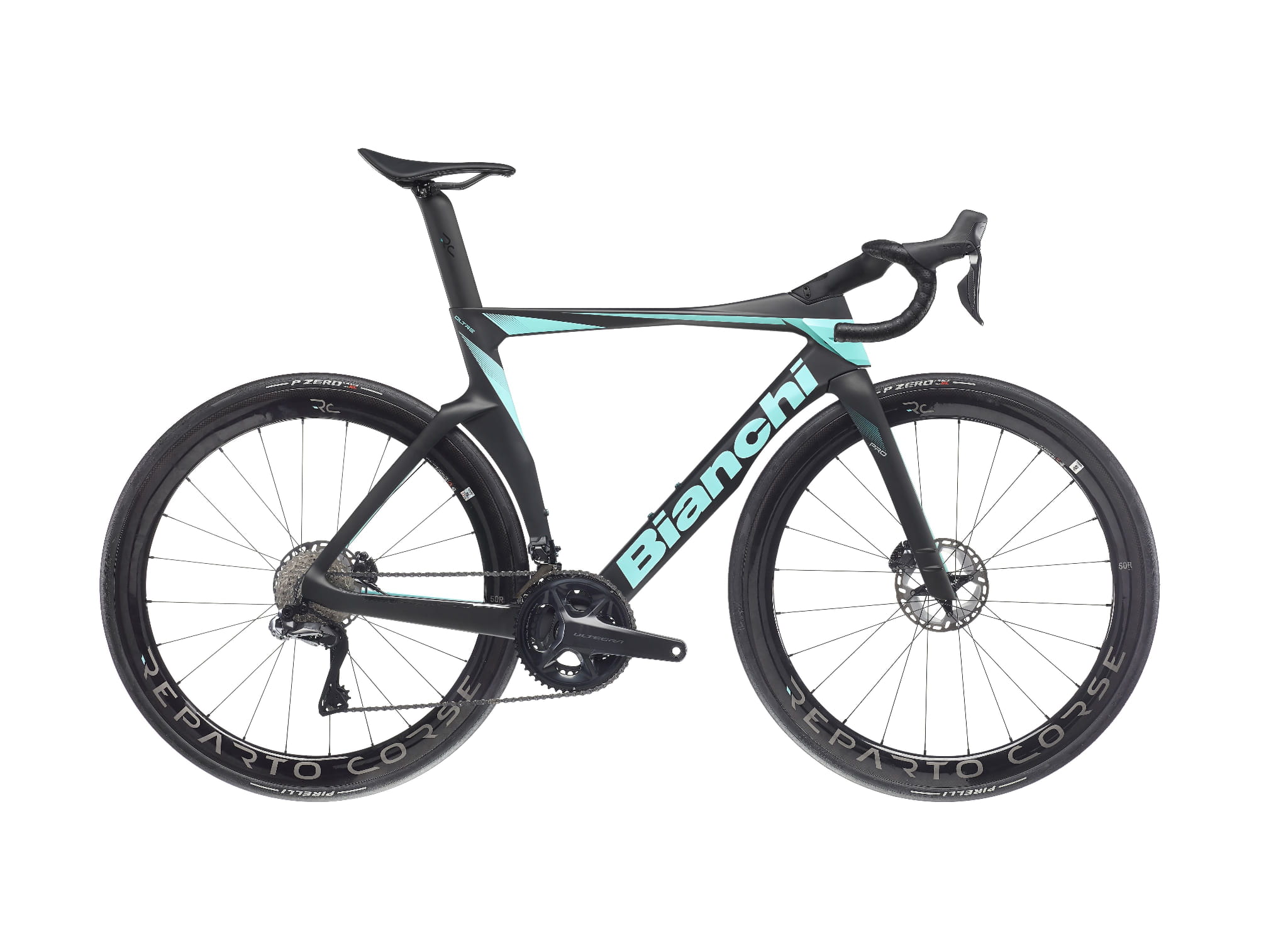 - Widelec: Full Carbon aero w/Bianchi CV System, Disc brakes, integrated head 1.1/4", flat mount caliper, thru axle 12x100mm