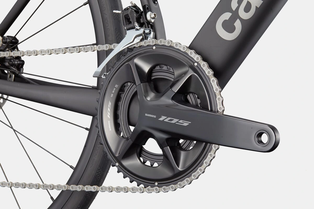 Grupa Shimano 105 12-speed gwarantuje precyzyjną zmianę biegów, a kaseta 11-36 pozwala dopasować przełożenia zarówno do stromych podjazdów, jak i szybkich odcinków płaskich. Korba 50/34 zapewnia uniwersalność i komfort każdej jazdy.