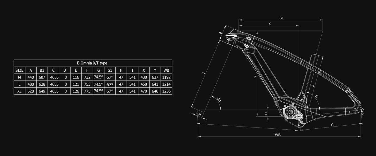 - Rama: e-Omnia T Type ALU, sizes: MD, LG, XL (43,48,53), 12x148mm Thru-axle, Ready to fix the chainguard, Post mount 160 disc brake type, Ready to fix rear kyckstand, custom rearcarrier integrated in the frame design, BatteryWall Darfon OmniaX/T/FX, Set dropout