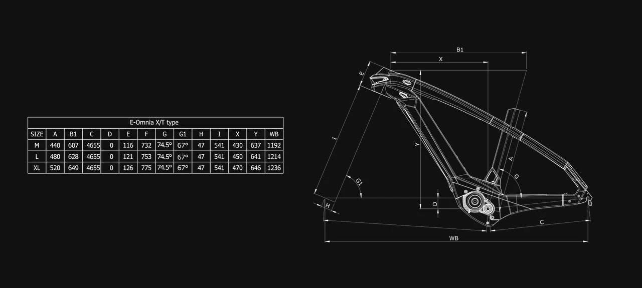 - Rama: E-OMNIA T-Type belt drive ALU sizes: 43-48-53 - IG 135 mm quick release dropouts (special dropout for internal gear) - Post mount 180 disc brake type - Internal cable routing in DT- Frame lock compatible - 625Wh compatible - custom rear carrier integrated