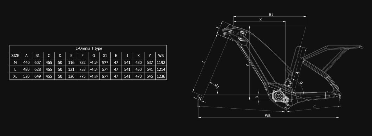 - Rama: e-Omnia T Type Step Thru ALU, rozmiary: MD, LG, XL (43,48,53), 12x148mm Thru-axle, Ready to fix the chainguard, Post mount disc brake type, Ready to fix rear kyckstand, customrear carrier integrated in the frame design, BatteryWall Darfon OmniaX/T/FX, Set dr