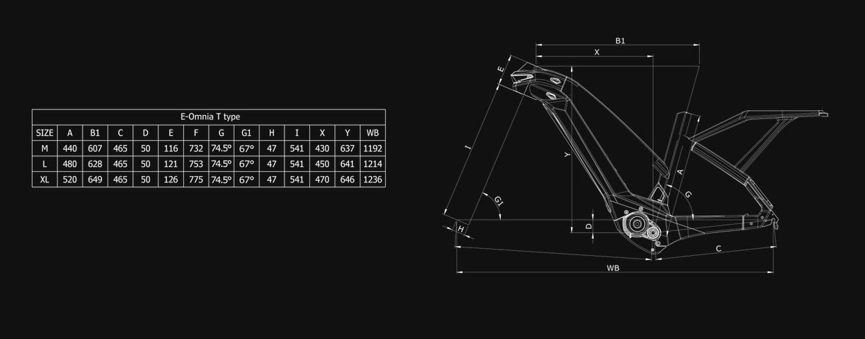 - Rama: E-OMNIA T-Type Step-through belt drive ALU sizes: 43-48-53 - IG 135 mm quick release dropouts (special dropout for internal gear) - Post mount 180 disc brake type - Internal cable routing in DT - Frame lock compatible - 625Wh compatible - custom rear carr