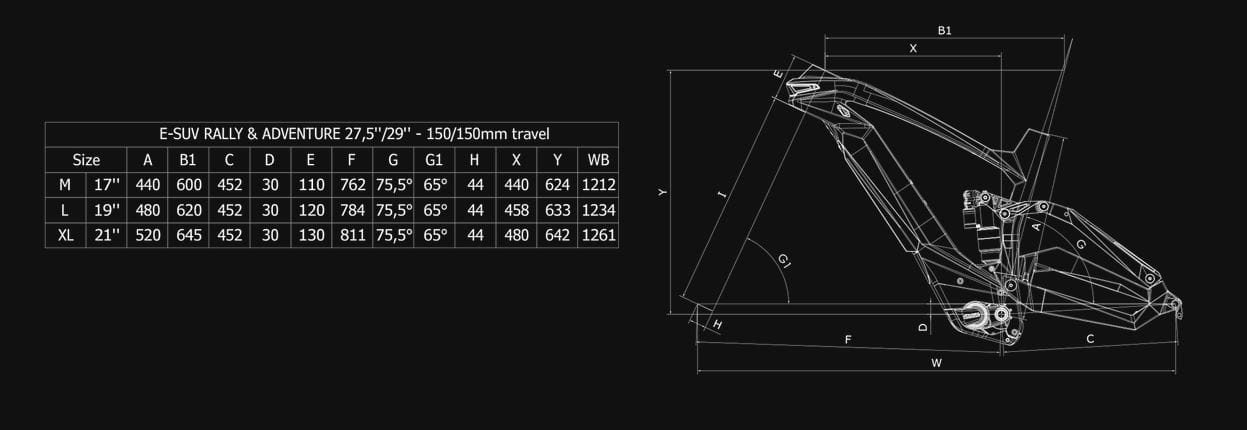 - Rama: Bianchi e-SUV Carbon sizes: 43, 48, 53 - 12x148 mm thru axle dropouts - Post mount 180 disc brake type - 1.5" tapered head tube - seatpost diam. 31,6mm - 150mm travel front & rear - compatible to 160mm travel front