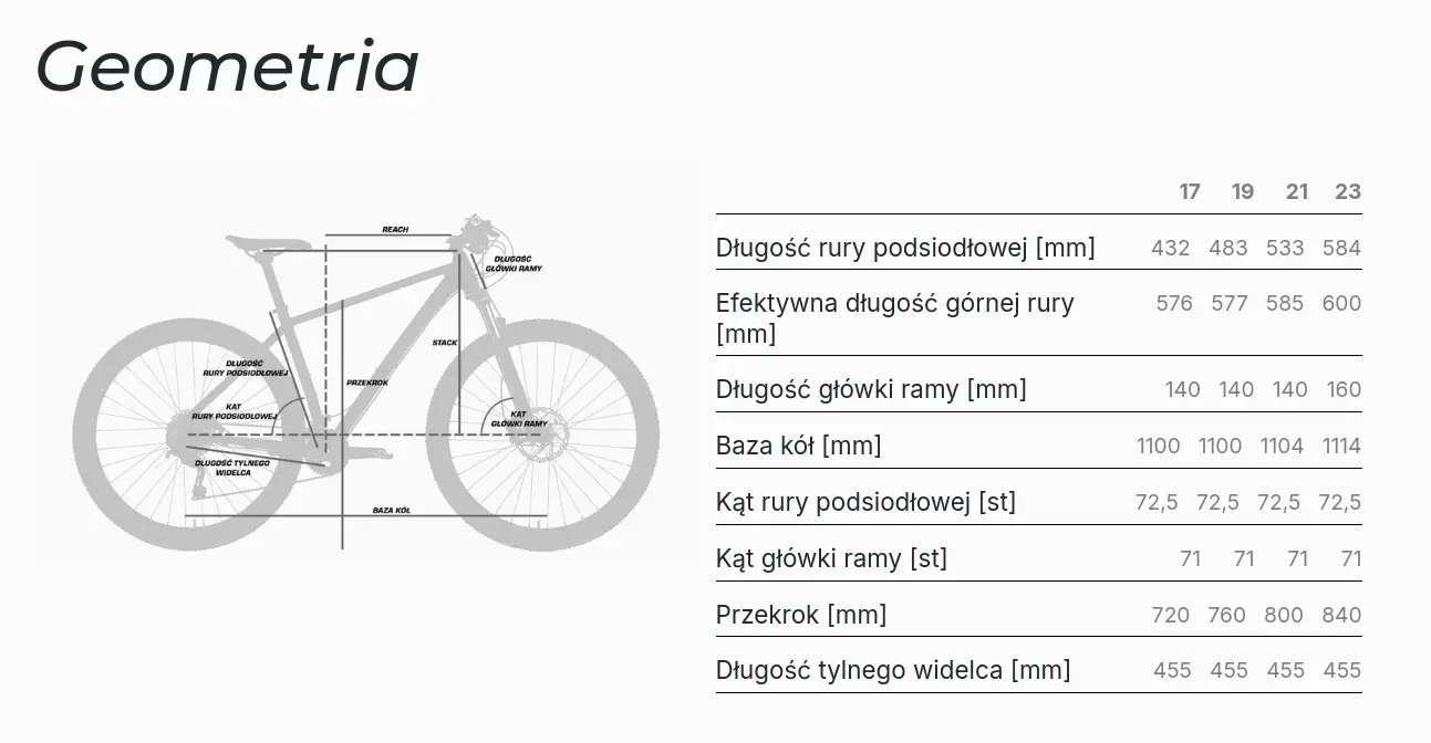 Rama z aluminium 6061-T6 dostępna w czterech rozmiarach (17", 19", 21", 23") zapewnia idealne dopasowanie do wzrostu i preferencji użytkownika. Solidna konstrukcja jest sztywna i odporna na obciążenia, a amortyzowany widelec SR Suntour M3010-A o skoku 50 mm redukuje drgania na nierównych nawierzchniach, znacząco podnosząc komfort jazdy.