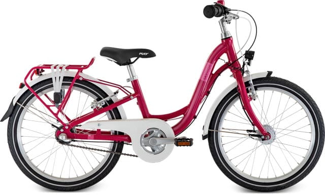 PUKY SKYRIDE 20-3 charakteryzuje się odporną na uszkodzenia powłoką proszkową, która chroni rower przed wstrząsami i promieniowaniem UV. W zestawie znajdują się bagażnik, stojak boczny, dzwonek oraz tylne światło LED z funkcją światła postojowego, co czyni rower wszechstronnym i kompletnym narzędziem do odkrywania świata na dwóch kółkach.