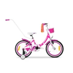 Rowerek posiada kółka podporowe, osłonę łańcucha, koszyczek oraz prowadnik, które zwiększają jego funkcjonalność i bezpieczeństwo.