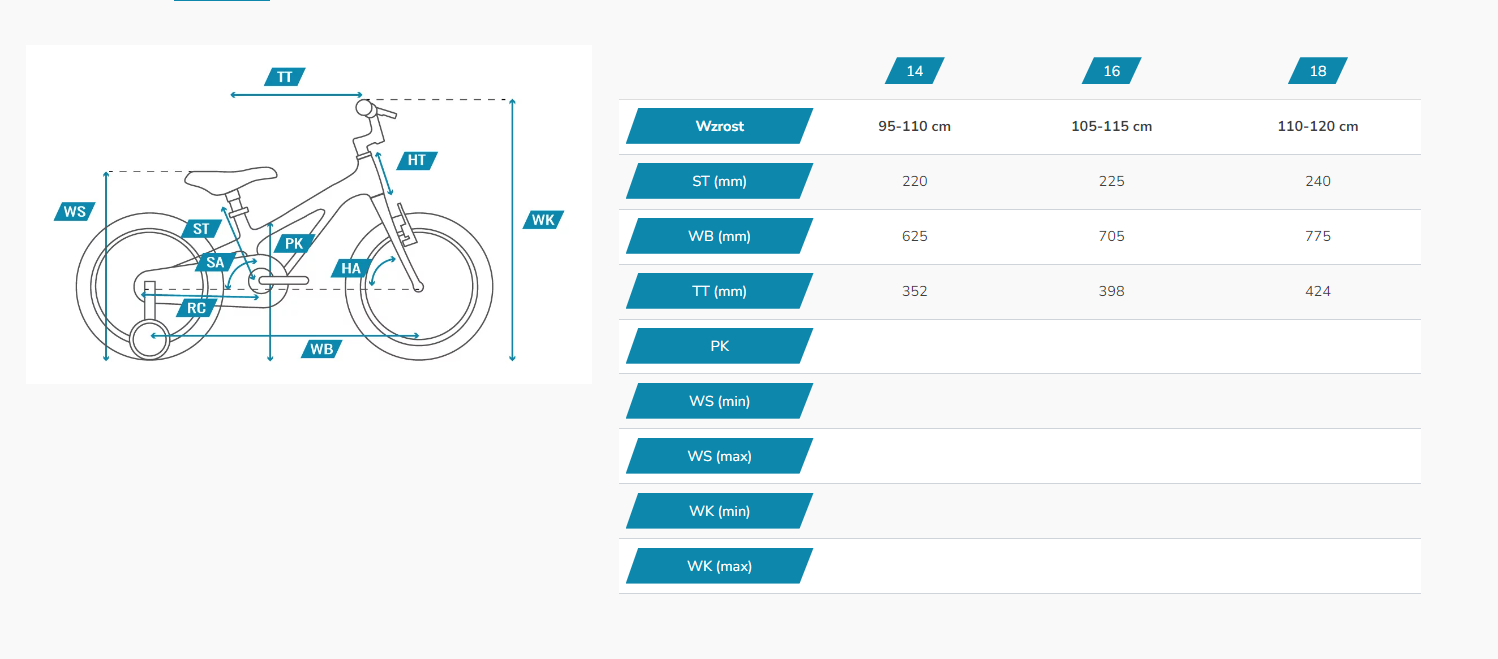 - Waga: 14 - 6KG / 16 - 6.5KG / 18 - 7KG (WITHOUT EQUIP.)