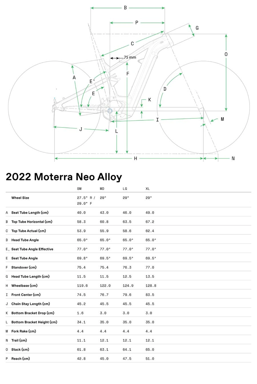 - Rama: Moterra Neo, SmartForm C1 Alloy, 150mm travel, Proportional Response Tuned Suspension, removable downtube battery, injection molded skid plate, 55mm chainline, internal cable routing, 148x12mm thru-axle, UDH hanger, post mount brake, tapered headtube, 18mm two-bolt kickstand mount, integrated rear rack mounts