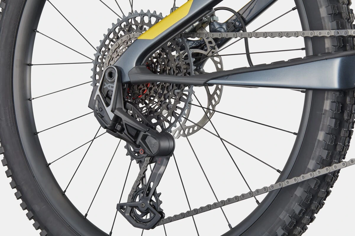 Najwyższej klasy napęd SRAM XO Eagle AXS T-Type oferuje bezprzewodową obsługę, ekstremalną wytrzymałość i natychmiastową zmianę przełożeń. Kaseta 10–52 i 12-rzędowy łańcuch T-Type zapewniają szeroki zakres przełożeń nawet na najstromsze podjazdy.