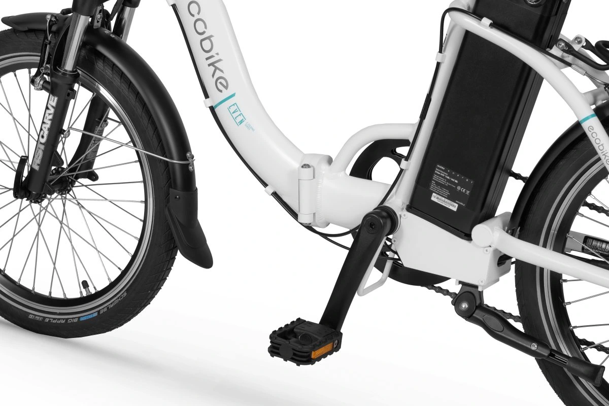 Ecobike Even jest rowerem składanym ze wspomaganiem elektrycznym o mocy 250W. Aby uzyskać najlepszą stabilność jazdy, umieściliśmy silnik w tylnej piaście. Rower rozpędza się do 25 km/h, a nowoczesny kontroler sprawia, że robi to płynnie. Baterie wyprodukowane na ogniwach firm Greenway (11,6 Ah/14,5 Ah/17 Ah))pozwalają pokonać od 50 km, aż do 140 km! Baterie są umiejscowione za rurą podsiodłową w pionie, co pozwala je bardzo wygodnie wyjmować.