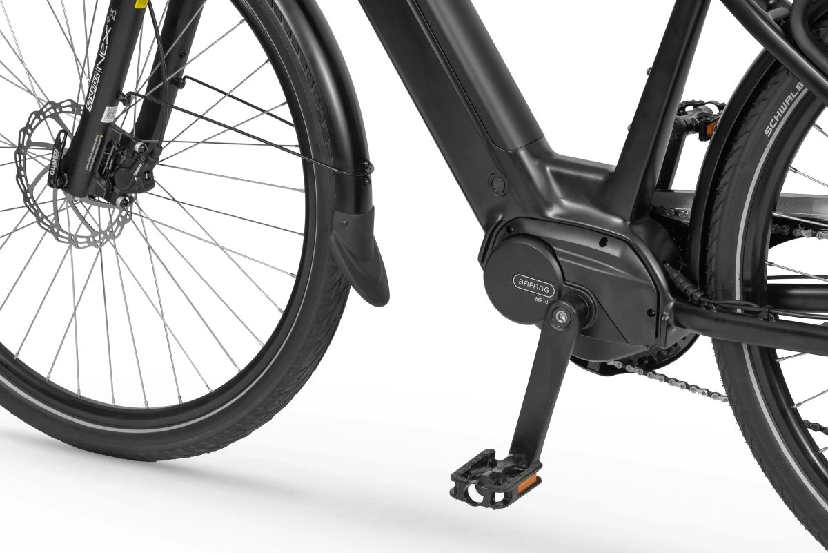 Rower elektryczny Ecobike LX 100 wyposażyliśmy w inteligentny system wspomagania z silnikiem Bafang® M210, który pracuje cicho i optymalnie dysponuje mocą oraz momentem obrotowym sięgającym aż 70 Nm. Geometria ramy pozwala na wygodne zajęcie komfortowej pozycji do jazdy, a uniwersalny design wpasuje się w zróżnicowane gusta. Dodatkowo system MIK zastosowany w bagażniku umożliwia bezpieczny montaż sakw i akcesoriów.