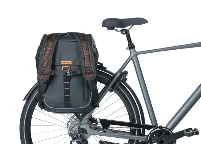 Sakwa miejska pojedyncza BASIL MILES TARPAULIN DAYPACK 17L, Hook On System, 100% wodoodporna black orange (NEW)