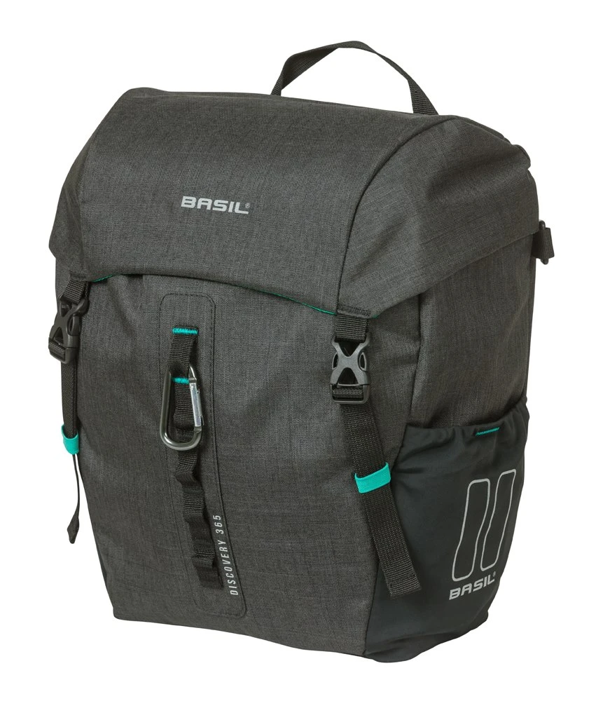 Sakwa pojedyncza BASIL DISCOVERY 365D SINGLE PANNIER BAG M 9L, MIK Hooks System, black melee (NEW 2026)