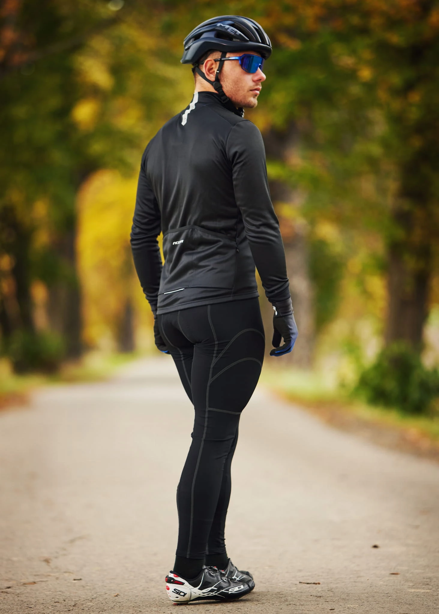 Długie spodnie kolarskie bez ocieplenia. Odpowiednie na pierwsze chłodne dni. Posiadają wygodną wkładkę oraz dopasowujące się do sylwetki szelki. Odblask na lewej nogawce poprawiający widoczność na drodze. Z tyłu niewielka kieszonka, pozwalająca przechować np. klucze, pieniądze lub batonika.