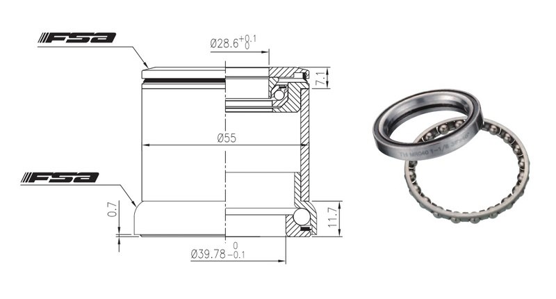 • górne łożysko: skośne, 1i1/8" ACB 36x45°