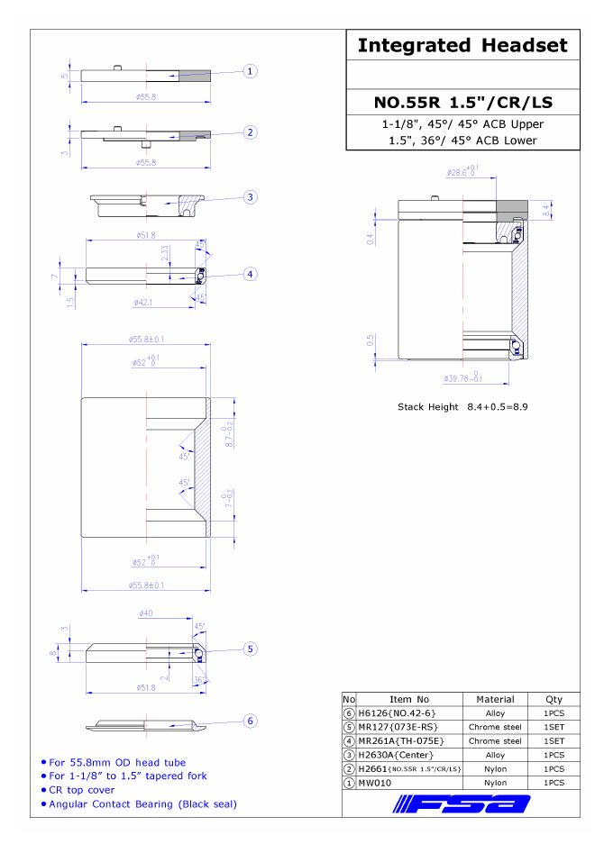 Stery FSA NO.55R 1.5"/ACR/3mm w/H2661 w/o compressor
