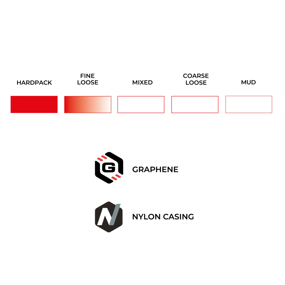- wytrzymałe klocki bieżnika wbijają się głębiej w miarę gęstnienia błota, zapewniając kontrolę w trakcie jazdy