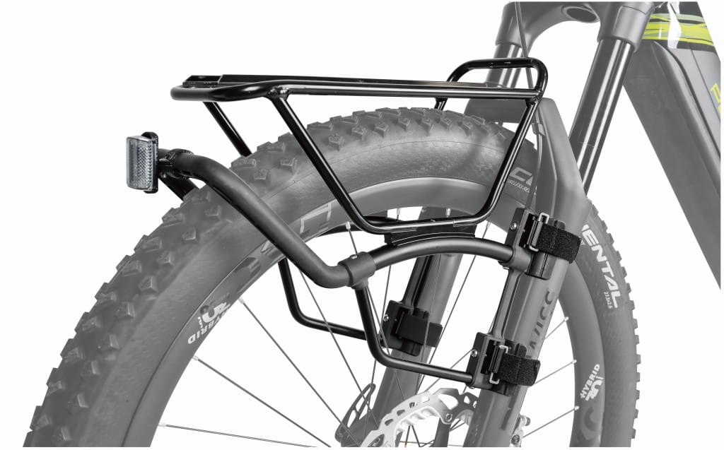 Idealny przedni bagażnik z systemem szybkiego montażu do widelcow amortyzowanych MTB lub sztywnych widelcow bez otworow w bagażniku.