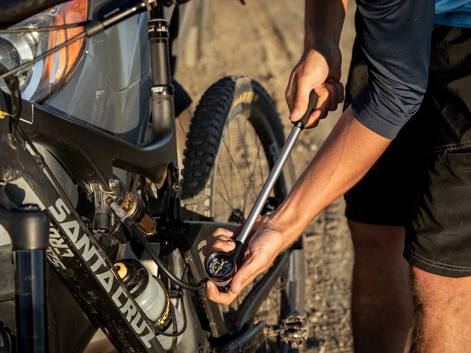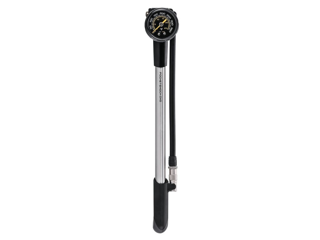 Większy brat PocketShock DXG! Precyzyjna pompka do amortyzatorow z wyciąganą głowką do szybkiego napełniania i łatwym do odczytu czujnikiem w zakresie 360 psi / 24,8 barów. Przycisk uwalniania powietrza i złącze Pressure-Rite ułatwiają ustawianie odpowiedniego ciśnienia i eliminują straty powietrza podczas odłączania, podczas gdy elastyczny wąż odciąża trzpień zaworu podczas pompowania.