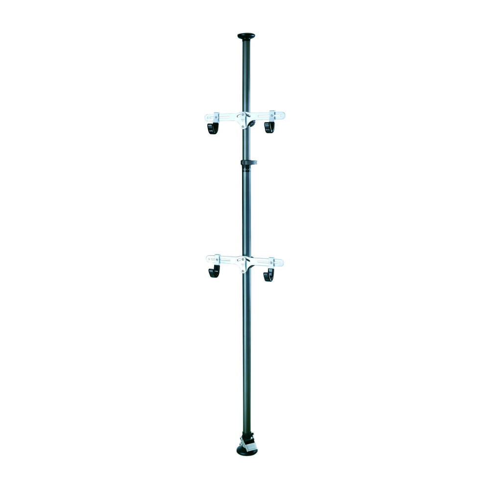 Nowoczesny i elegancki stojak do przechowywania rowerów, a także system wystawienniczy. Regulacja wysokości do 320 cm. Uchwyty rowerowe można regulować w zakresie 0-30 stopni, aby pomieścić rowery z pochyłymi ramami. Podstawy z gumy dla ochrony podłogi i sufitu. W komplecie 2 wieszaki, może pomieścić do czterech opcjonalnych uchwytów.