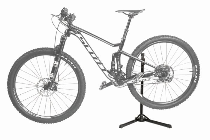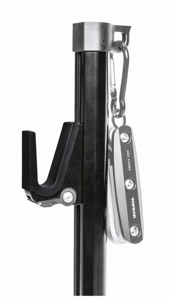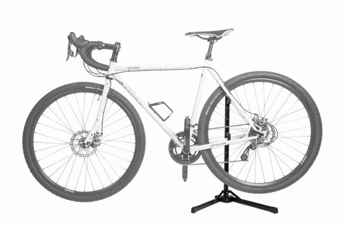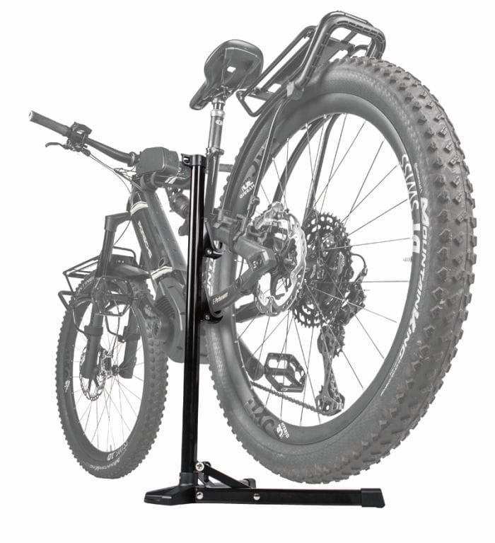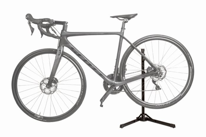 Stabilny i przenośny stojak rowerowy do przechowywania roweru oraz konserwacji układu napędowego. Dźwignie QR przyspieszają pozycjonowanie haków ramy w celu dopasowania do tylnych widełek. Zaczepy do ramy z gumy odpornej na uszkodzenia nie niszczą lakieru na rowerze, a mocniejsza, większa podstawa zwiększa stabilność, która jest idealna do rowerów elektrycznych, rowerów o dużej masie i większych ram rowerowych. Zawiera wbudowane oczko na klucze.