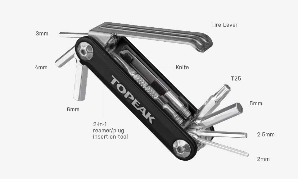 11-funkcyjne, profesjonalnej jakości, precyzyjne mini narzędzie ze zintegrowanymi funkcjami naprawy opon bezdętkowych. Narzędzia do naprawy opon są ukryte w składanym korpusie narzędzia. Zintegrowane narzędzia zatrzaskują się w korpusie narzędzia, co ułatwia obsługę podczas naprawy. Idealny do wszelkich napraw szosowych i mtb. Kompatybilny z zestawem narzędzi Ninja Toolbox (dostępnym oddzielnie)