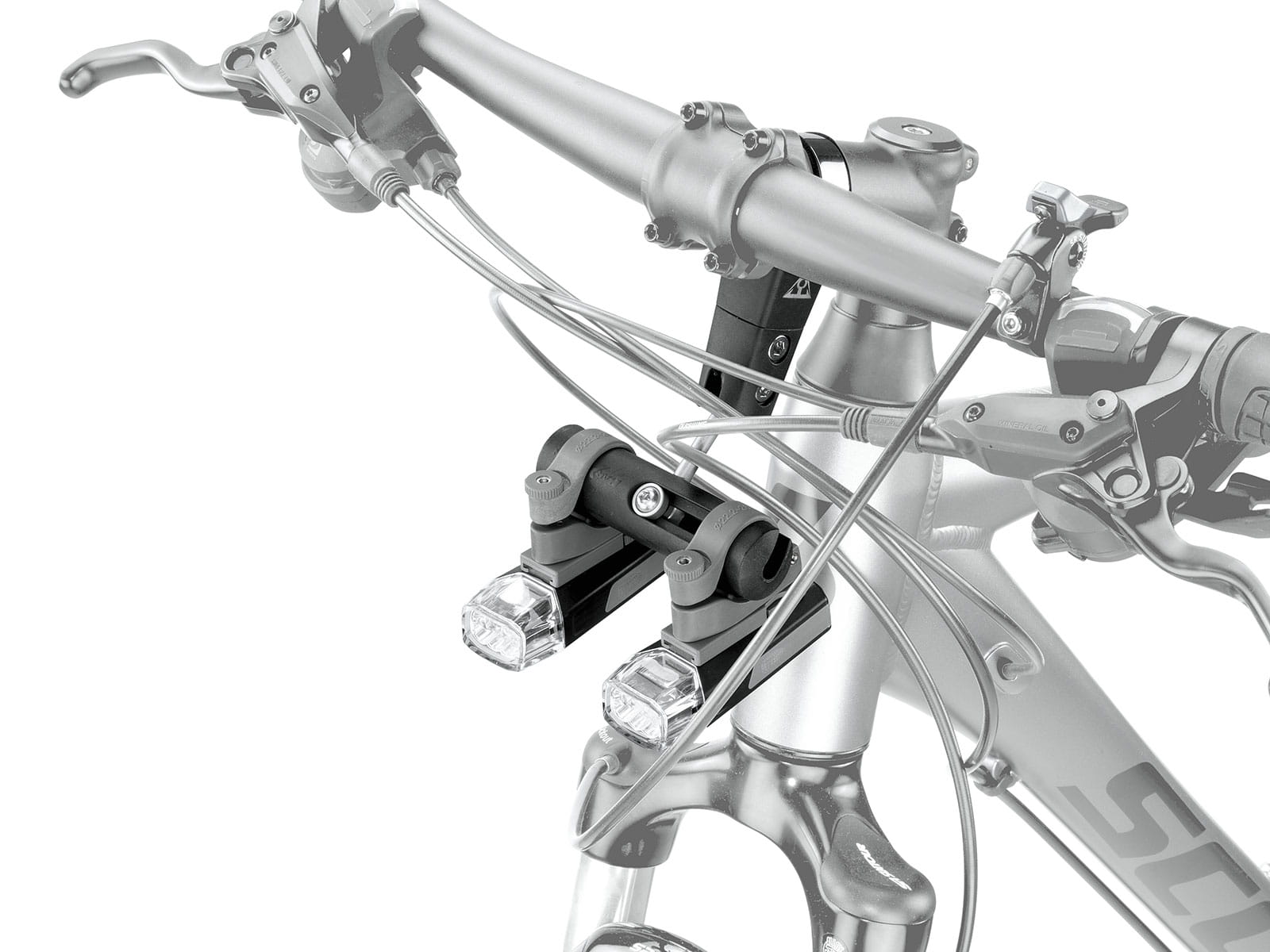 CECHY: wszechstronna możliwość montażu - na mostku lub na kierownicy. Obrotowa, blokowana poprzeczka może być ustawiona w dowolnej pozycji