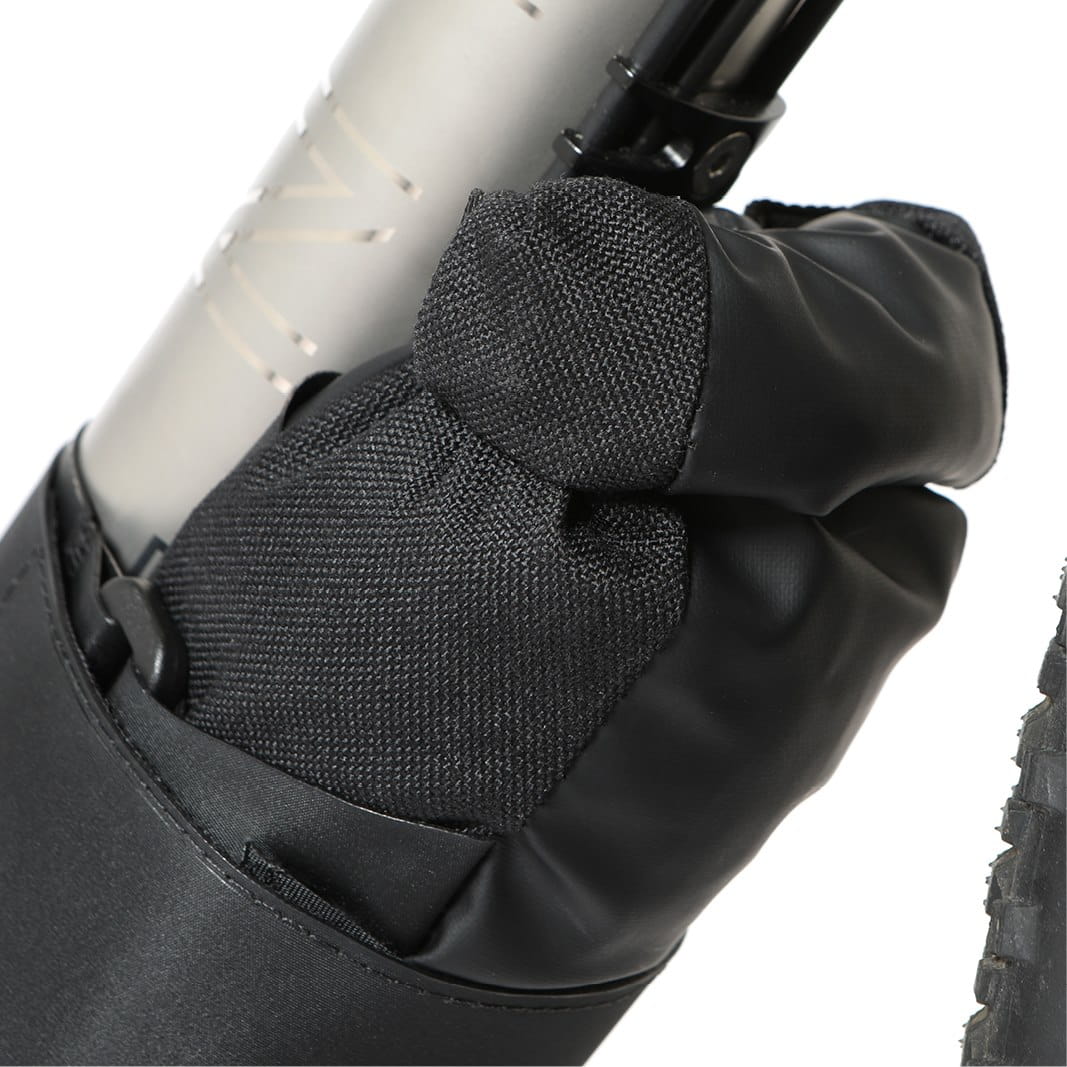 - zintegrowany pasek z rzepem owija się wokół torby i dolnej rury, mocno ją zabezpieczając i minimalizując drgania