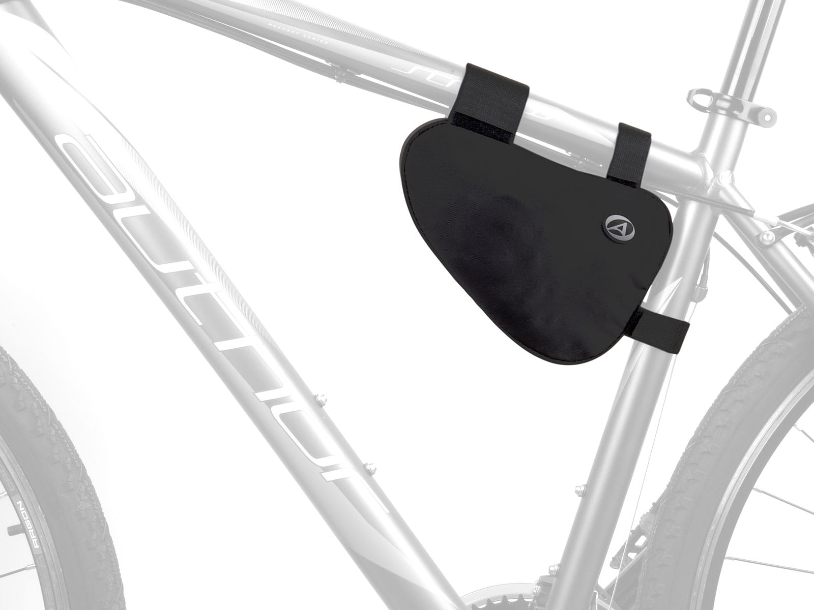 Torba trójkątna z materiału odpornego na ścieranie i działanie wody. Zapinana na zamek. Mocowanie do ramy za pomocą pasków z rzepem. Pojemność: 1 l. Wymiary: 21 x 4,5 x 14 cm. Kolor: czarna.