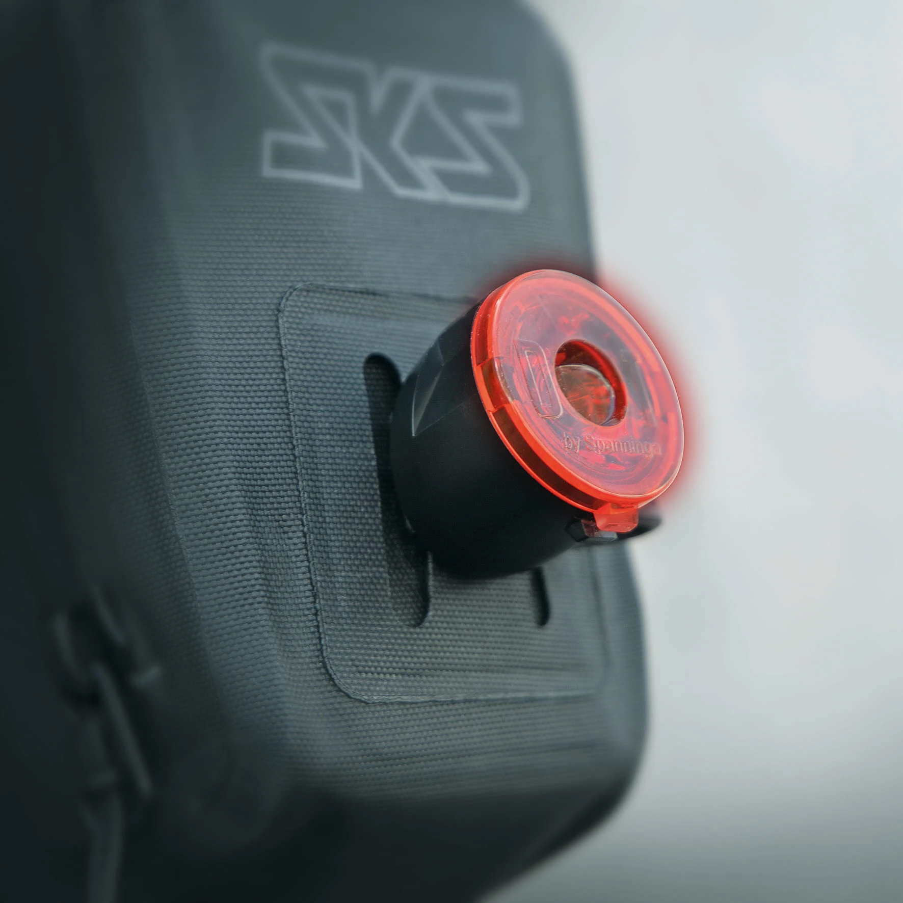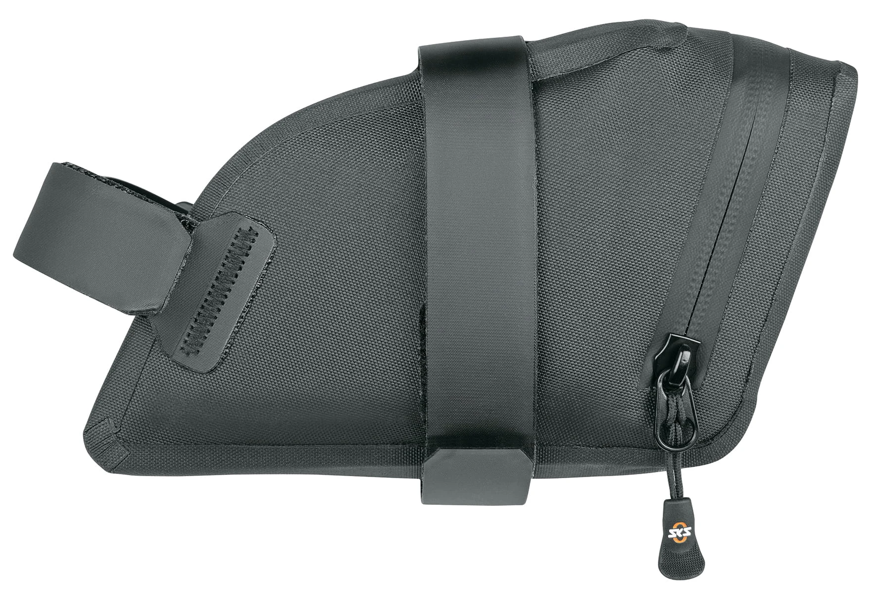 Dwie wewnętrzne kieszenie wykonane z wytrzymałej tkaniny siatkowej zapewniają bezpieczeństwo kluczy i pieniędzy. Torba podsiodłowa SKS jest wyposażona w antypoślizgowe zapięcia na rzepy, które zapewniają bezpieczne mocowanie pod siodełkiem roweru. Można je indywidualnie przyciąć na wymiar i wymienić. Elementy odblaskowe i wspornik tylnego światła zapewniają lepszą widoczność nawet podczas jazdy o zmierzchu.