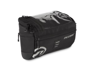 Torebka na kierownicę z miejscem na smartfona. Wykonana z trwałego, odpornego na uszkodzenia poliestru 400D. Podstawa torebki została pokryta wodoodpornym, grubym materiałem dla solidnej konstrukcji i łatwego czyszczenia powierzchni - wystarczy wilgotna ściereczka, aby usunąć zabrudzenia z błota czy pyłu. Jedna główna komora oraz dodatkowe, trzy mniejsze zewnętrzne kieszenie na drobiazgi, zapinane na zamek błyskawiczny. Dzięki użyciu zamka z dwoma suwakami, które mogą zostać ze sobą spięte, gwarantuje bezpieczeństwo zawartości torebki. Wierzchnia strona została wyposażona w odblaskowy uchwyt na zapięcia oraz specjalną, przeźroczystą kieszeń na smartfona zamykaną na zamek. Folia, która ją pokrywa przystosowana jest do działania ekranów dotykowych, dzięki czemu można obsłużyć telefon nie wyciągając go z kieszeni. Ułatwia to np. korzystanie z nawigacji podczas podróży. W łatwy sposób mocowana i demontowana do kierownicy i sterów za pomocą uchwytów na rzep. W zestawie odpinany pasek umożliwiający noszenie torby na ramieniu. Odblaskowe logo Accent zwiększające bezpieczeństwo na drodze.
