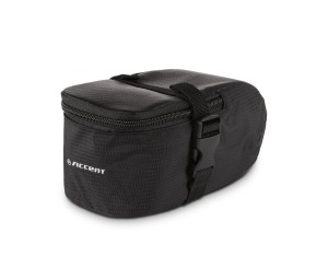 Torebka podsiodłowa wykonana z bardzo trwałego, odpornego na uszkodzenia poliestru 400D. Górna i dolna zewnętrzna część torebki zostały pokryte wodoodpornym, grubym i zwartym materiałem dla solidnej konstrukcji i łatwego czyszczenia powierzchni - wystarczy wilgotna ściereczka, aby usunąć zabrudzenia z błota czy pyłu. Dzięki wzmocnieniu grubą warstwą tworzywa od środka, powstał sztywny i solidny stelaż zwiększający bezpieczeństwo zawartości torebki podczas upadku. W łatwy sposób mocowana do stelaża siodełka za pomocą dwóch bocznych uchwytów zamykanych na klamry. Z łatwością pomieści podstawowe przedmioty niezbędne na wycieczkach rowerowych, takie jak zapasowa dętka czy klucze imbusowe. Torebka wyposażona jest także w odblaskowe logo zwiększające bezpieczeństwo na drodze. Dostępna w dwóch rozmiarach: M i L.