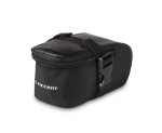 Torebka podsiodłowa wykonana z bardzo trwałego, odpornego na uszkodzenia poliestru 400D. Górna i dolna zewnętrzna część torebki zostały pokryte wodoodpornym, grubym i zwartym materiałem dla solidnej konstrukcji i łatwego czyszczenia powierzchni - wystarczy wilgotna ściereczka, aby usunąć zabrudzenia z błota czy pyłu. Dzięki wzmocnieniu grubą warstwą tworzywa od środka, powstał sztywny i solidny stelaż zwiększający bezpieczeństwo zawartości torebki podczas upadku. W łatwy sposób mocowana do stelaża siodełka za pomocą dwóch bocznych uchwytów zamykanych na klamry. Z łatwością pomieści podstawowe przedmioty niezbędne na wycieczkach rowerowych, takie jak zapasowa dętka czy klucze imbusowe. Torebka wyposażona jest także w odblaskowe logo zwiększające bezpieczeństwo na drodze. Dostępna w dwóch rozmiarach: M i L.