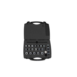 Zestaw do łożysk Unior Over Axle to profesjonalne rozwiązanie do precyzyjnego i bezpiecznego montażu łożysk piast w piastach z osiami przelotowymi.Zaprojektowany z myślą o wydajności warsztatowej i długotrwałej niezawodności, zestaw ten umożliwia najpierw ustawienie łożyska na osi, a następnie precyzyjne wciśnięcie go na miejsce, zapewniając prawidłowe ustawienie i zapobiegając uszkodzeniom łożysk i panewek piast.Zaprojektowany zgodnie z profesjonalnymi standardami Unior, jest niezbędnym ulepszeniem dla mechaników pracujących z nowoczesnymi piastami z łożyskami uszczelnionymi.Atrybuty produktu:Zestaw jest kompatybilny z szeroką gamą popularnych piast z łożyskami uszczelnionymi dostępnych na rynku. Składa się z dwóch uchwytów do zaciskania łożysk z prętem gwintowanym, adapterów łożysk osi oraz dedykowanych podkładek dystansowych, które pasują do najpopularniejszych kombinacji osi i łożysk.Zestaw zawiera dwa adaptery do każdego z następujących łożysk:Do osi 10 mm: 6000, 6900Do osi 12 mm: 6001, 6801, 6901Do osi 15 mm: 6802, 15267, 6902, 6002Do osi 17 mm: 6803, 1728, 6003Do osi 18 mm: 6903/18Do osi 20 mm: 6804, 6904Dołączone podkładki dystansowe:Podkładka dystansowa 20 × 45Podkładka dystansowa 17 × 45Podkładka dystansowa 15 × 45Podkładka dystansowa 10 × 40Każdy wypust jest grawerowany laserowo, co umożliwia szybką i łatwą identyfikację, usprawniając pracę i skracając czas przezbrajania w zatłoczonych warsztatach.Może być używany jako rozszerzenie zestawu prasy do łożysk 1721.Kompatybilny z uchwytem Quick Slide 1721.3 (nie wchodzi w skład zestawu)