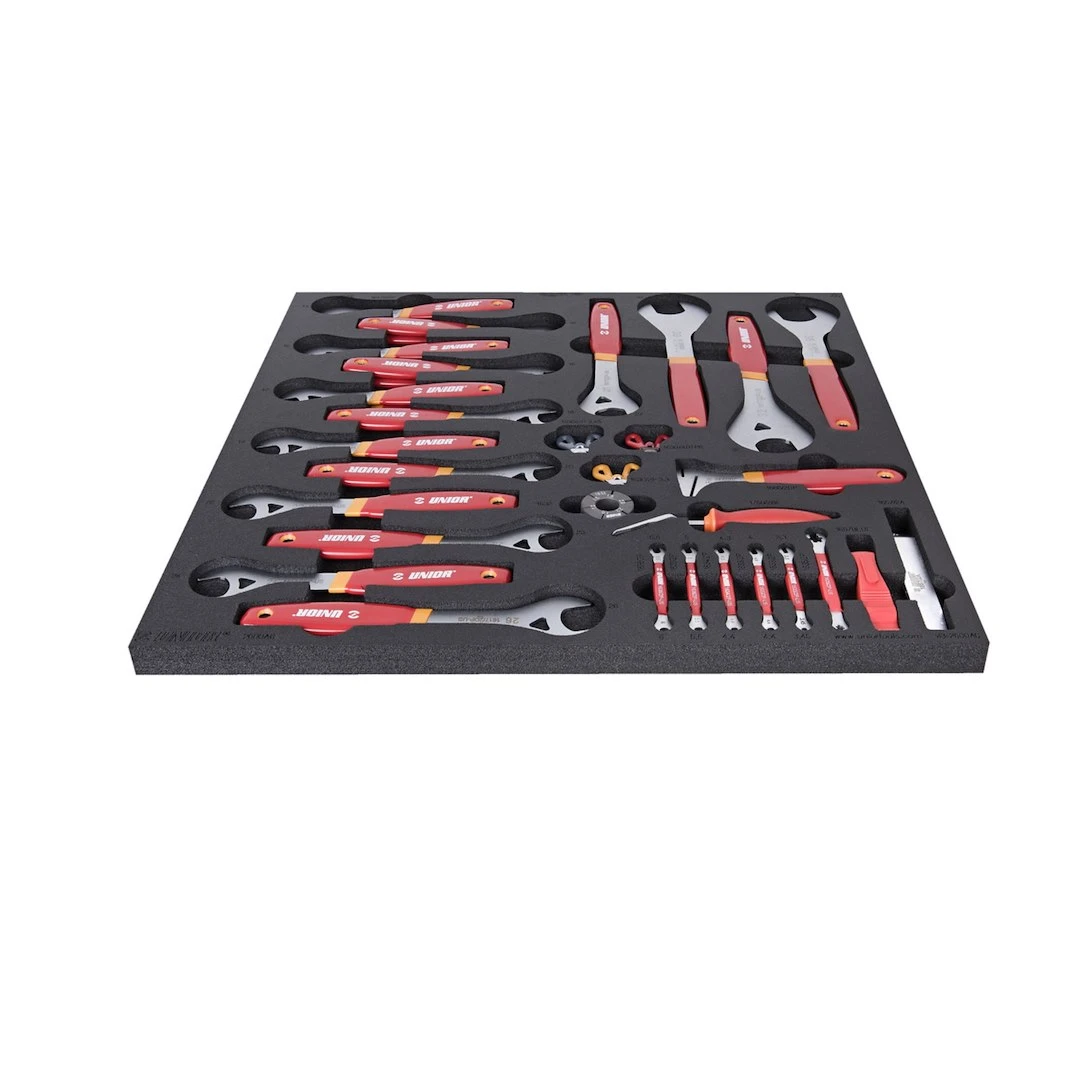 Klucz do stożków, jednostronny 32, 36, 13 (2x), 14 (2x), 15 (2x), 16 (2x), 17 (2x), 18, 19, 20, 22, 24, 30, 27, 23, 26Klucz do szprych DT Swiss torx.Klucz do płaskich szprychKlucz do szprych4x4,4, 3,3x3,45Klucz do szprych, Shimano 4,3x4,4Klucz do szprych, MavicKlucz do szprych 5 mm oraz 5.5 mm 5x5,5, 5.5x6Zestaw dwóch metalowych łyżek do kółZestaw dwóch łyżek do opon, kolor czerwony.Przyrząd do prostowania tarcz hamulcowych 2,2