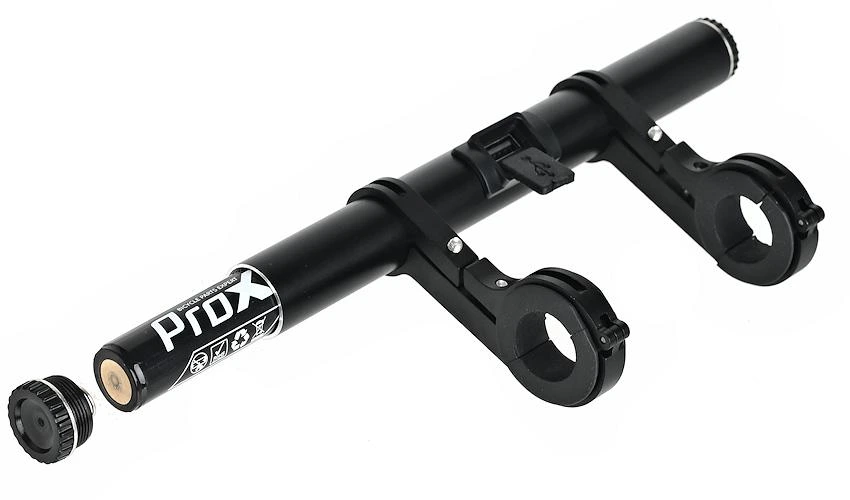 Aluminiowe wsporniki oraz obudowa z tworzywa ABS gwarantują stabilność i odporność na wibracje. Uchwyt pasuje do kierownic o średnicy 25,4 mm oraz 31,8 mm, a dołączone pierścienie redukcyjne oraz klucz imbusowy 3 mm umożliwiają szybki i łatwy montaż.