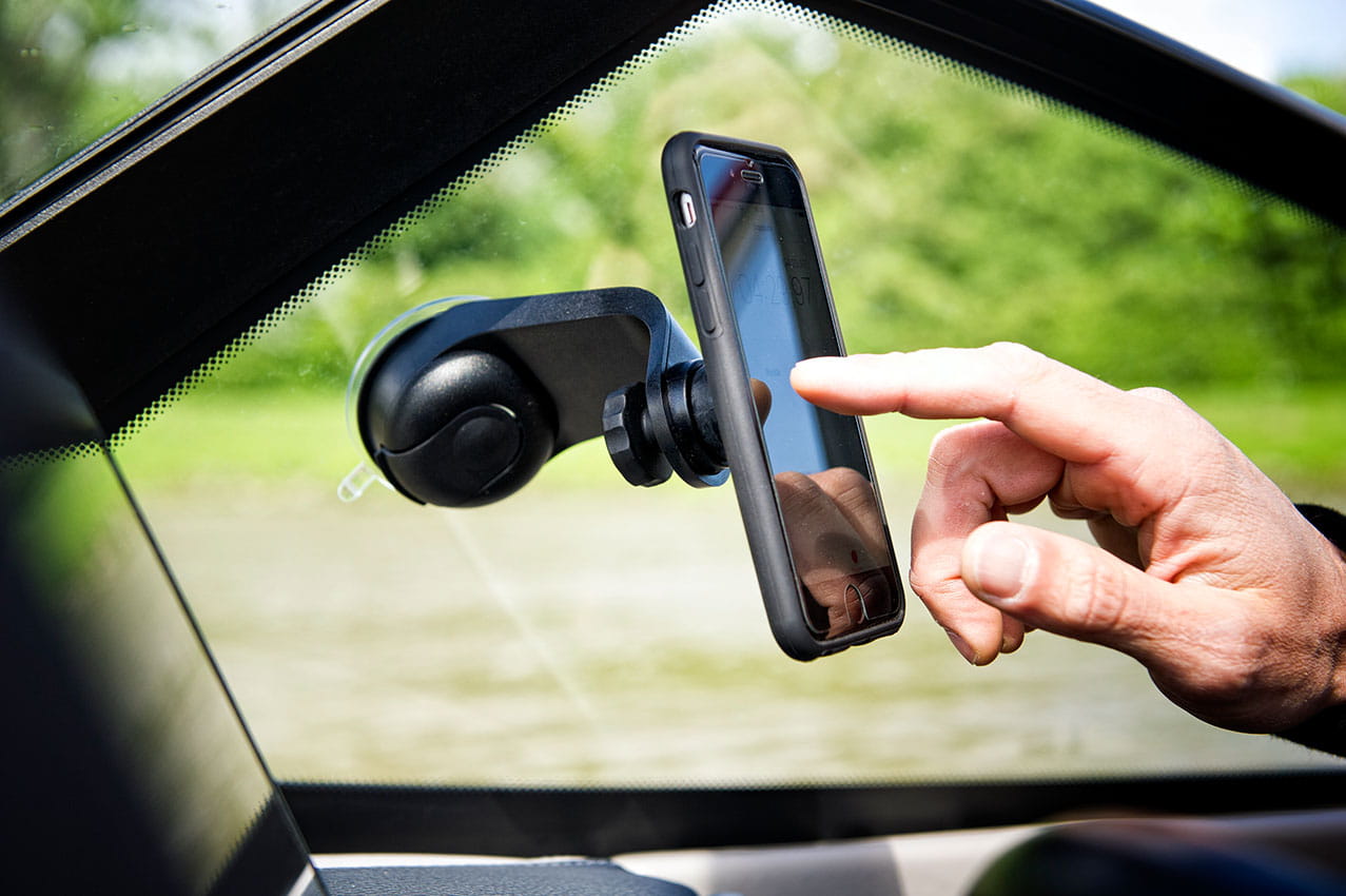 Uchwyt samochodowy do telefonu SP Connect Suction Mount mocowany do szyby samochodu. Pozwola w bezpieczny sposób przymocować smartphone lub tablet w samochodzie. Uchwyt pasuje do każdego elementu posiadającego uniwersalne mocowanie SP Connect.